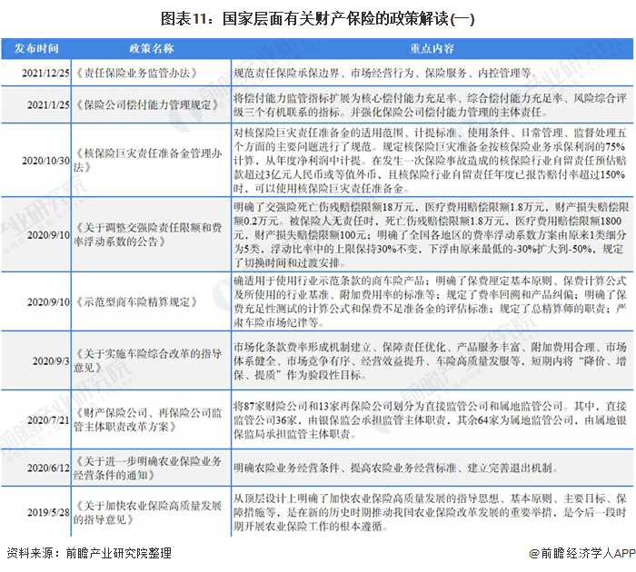 “十三五”以来,国家发改委、银保监会等相关部门也陆续出台相关政策推进财产保险健康发展,具体内容包括扩大财产保险保障范围、实行保险综合实力、偿付能力等监管,维护保险市场秩序,制定保险费率行业标准,化解突出风险等,重点改革有序推进,促进保障作用充分发挥。