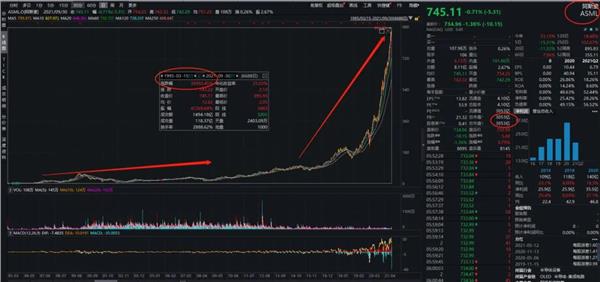 阿斯麦1995年3月上市,至今涨幅高达393倍。