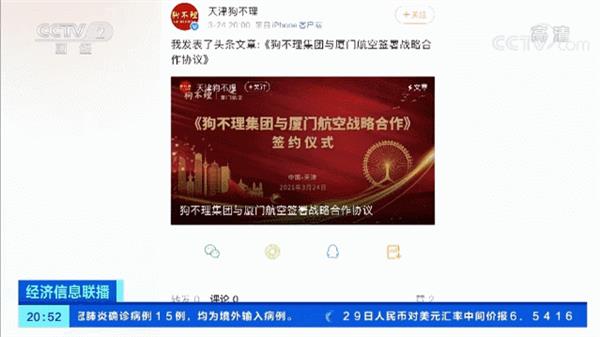不过在关店的同时,狗不理似乎也在进行新的业务布局,同样在这个官方微博,记者看到,就在2021年3月24日, 狗不理集团与厦门航空天津分公司正式签署战略合作协议,厦门航空将把狗不理纳入配餐原材料定点供应基地。
