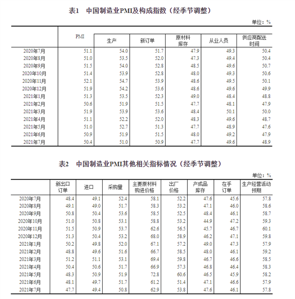 (原标题:统计局:7月官方制造业PMI为50.4%)